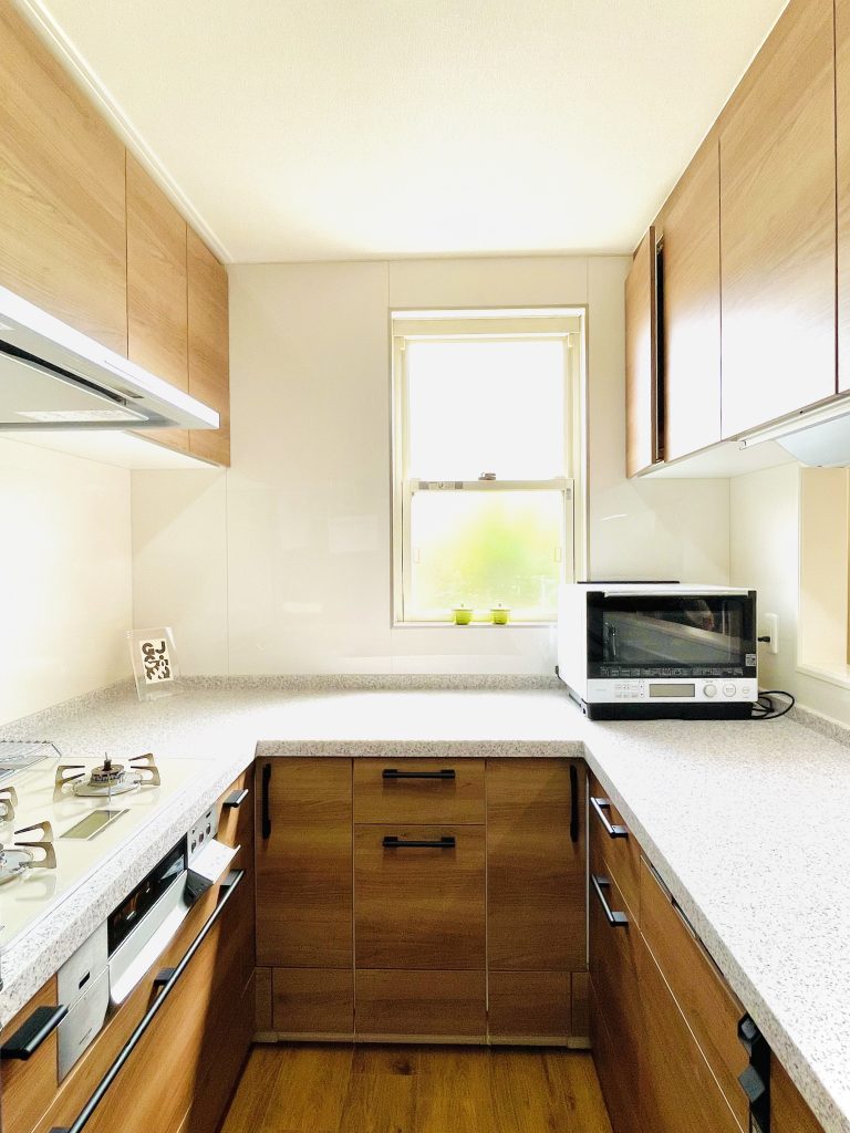 知人の紹介でキッチンの入替工事を請けさせて頂きました。素敵なご家族にぴったりの素敵なキッチンに仕上がったと思います。使い勝手の良いコの字型キッチンは、それだけで無くゆとりがあり、より豊かな空間にしてる様に感じました。